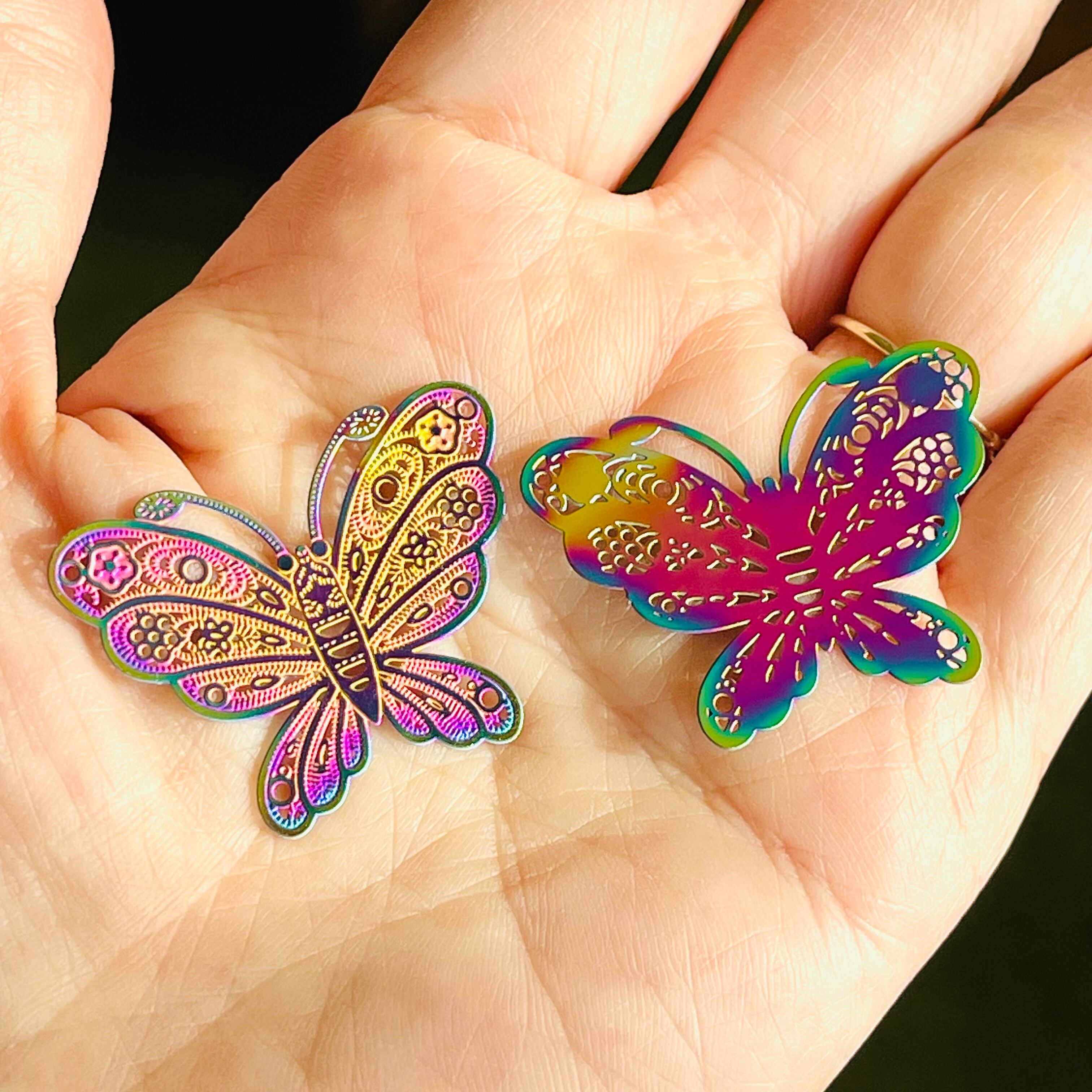 蝶・バタフライの4枚セットの透かしパーツ・チャームです。